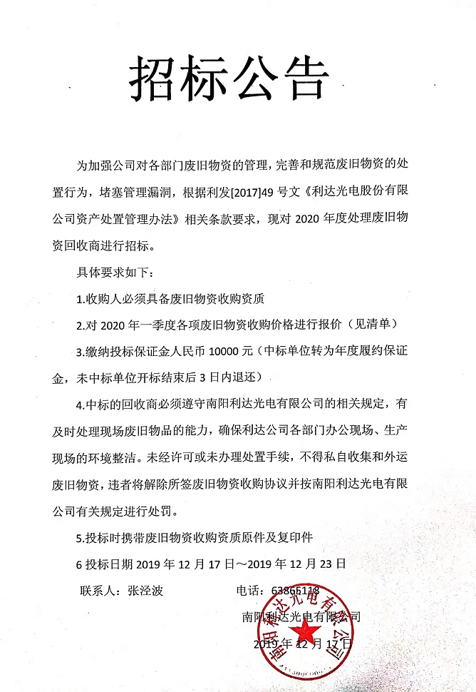 - (2025-07-17)利達光電公開招聘財務(wù)部部長擬錄用人員公示
